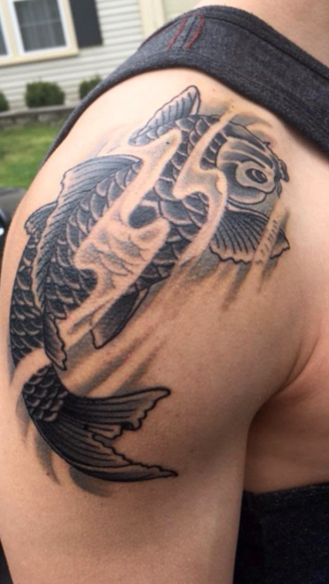 Koi Fish tattoo by Comes a Time Tattoo Fairfax, VA