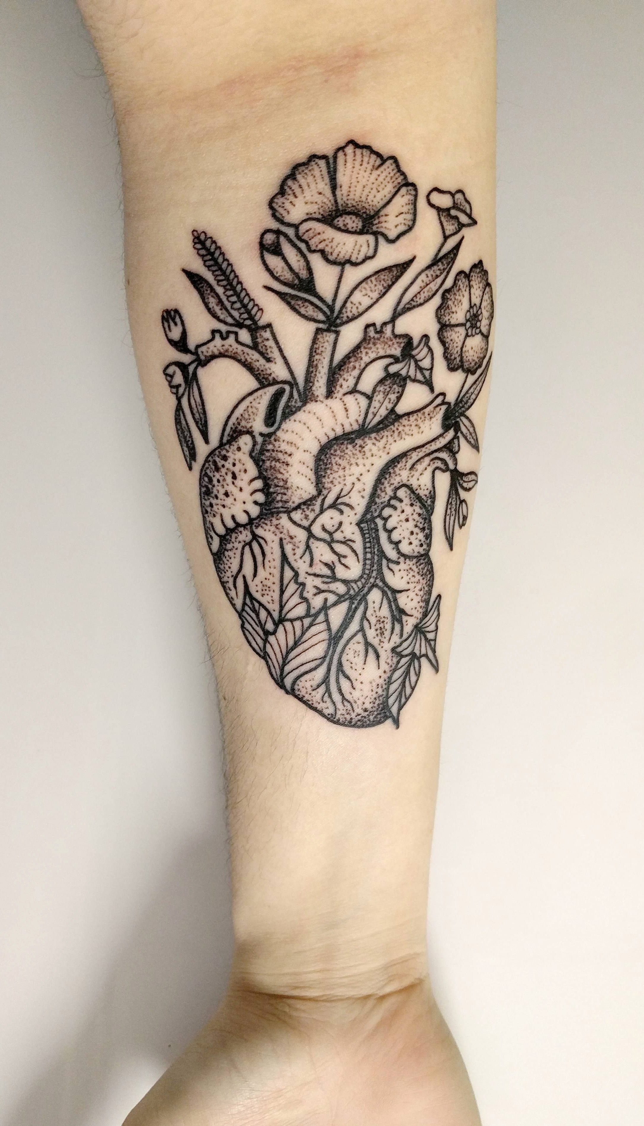 Dotwork Anatomical Heart by John at Old Town Tattoo. Edinburgh, UK