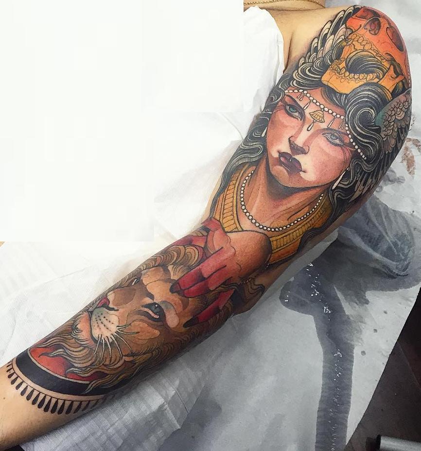 Girl skull lion tattoo by Denis Vazios, Vazios studio tattoo, Vitória, Brazil