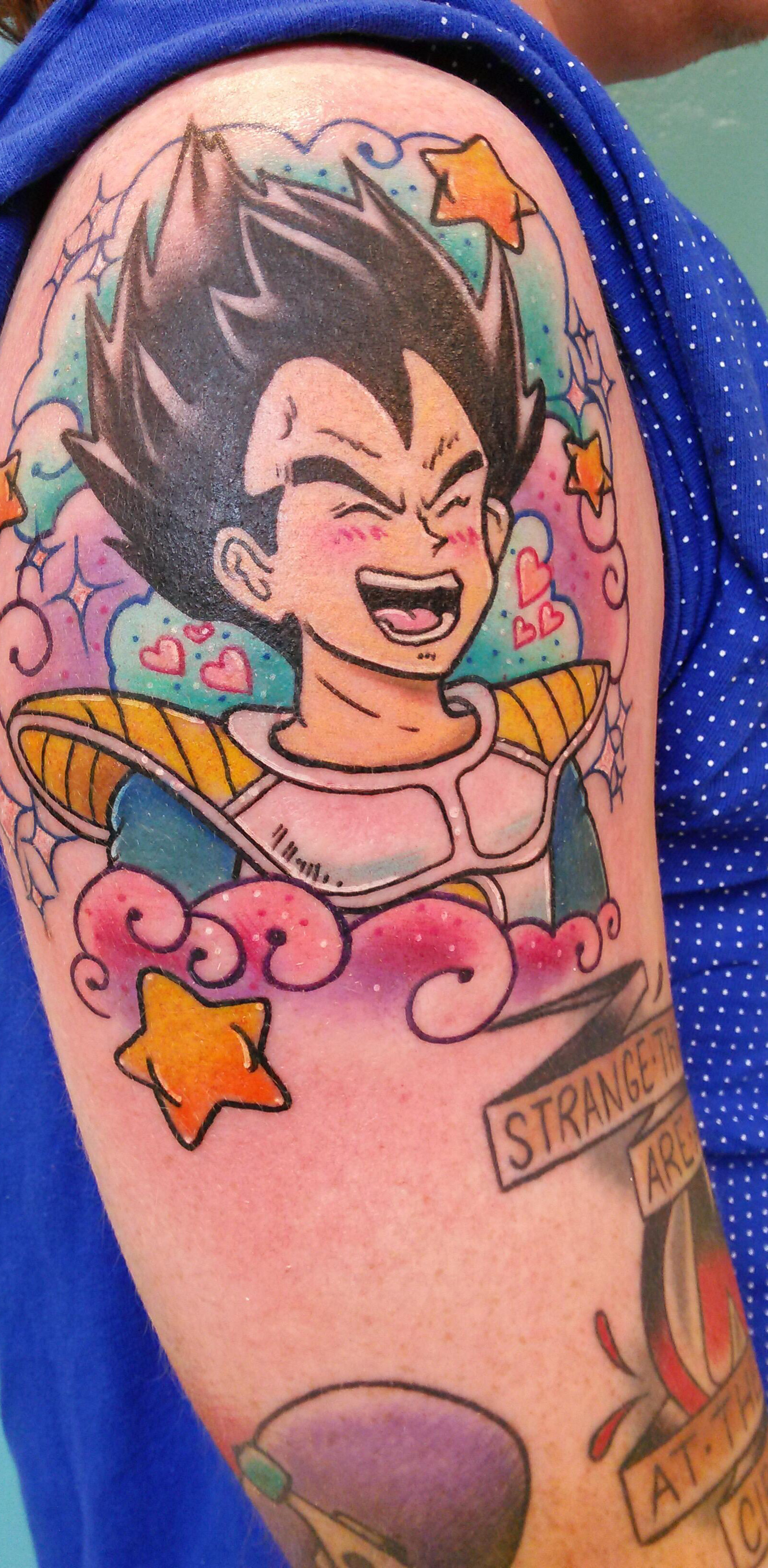 Kawaii Vegeta Piece tattoo by Dee at Adorn West, Portland, OR