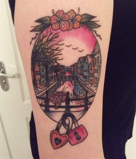 Amsterdam Scene tattoo by Just Jen @ Den of Iniquity, Edinburgh, Scotland