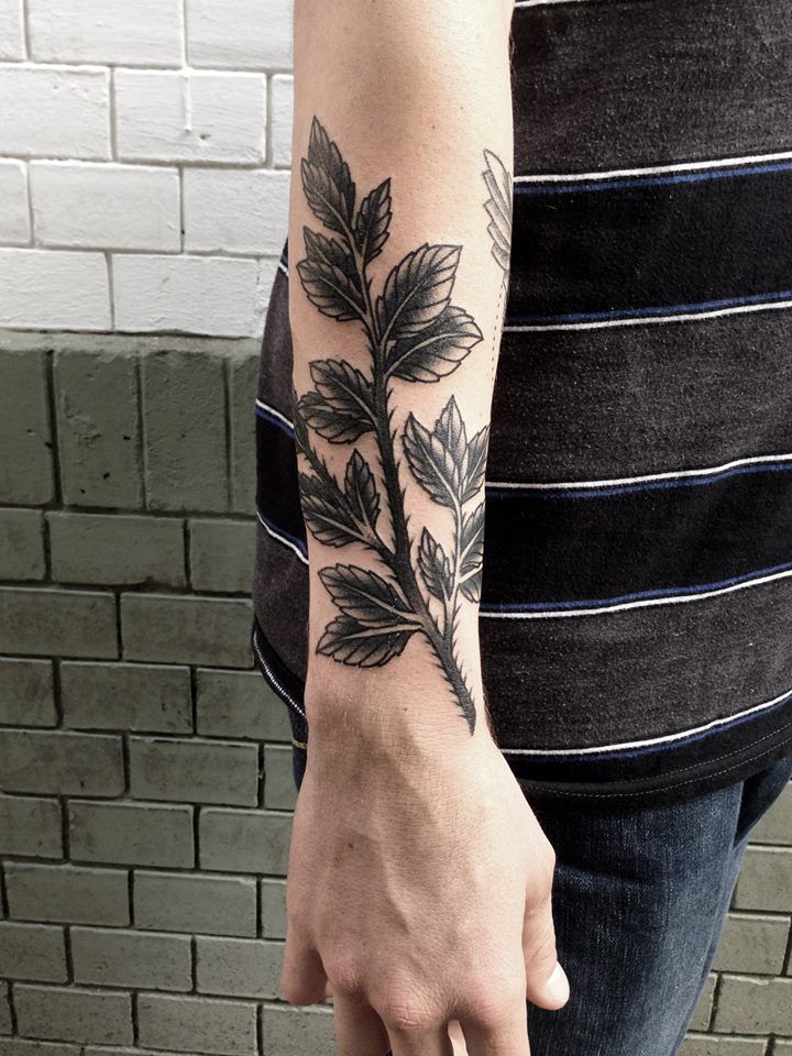 Leaves lower arm tattoo for girls