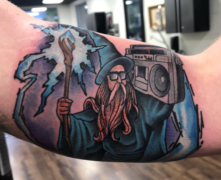 Wizard tattoo done by the driza at Niteowl Tampa,Fl