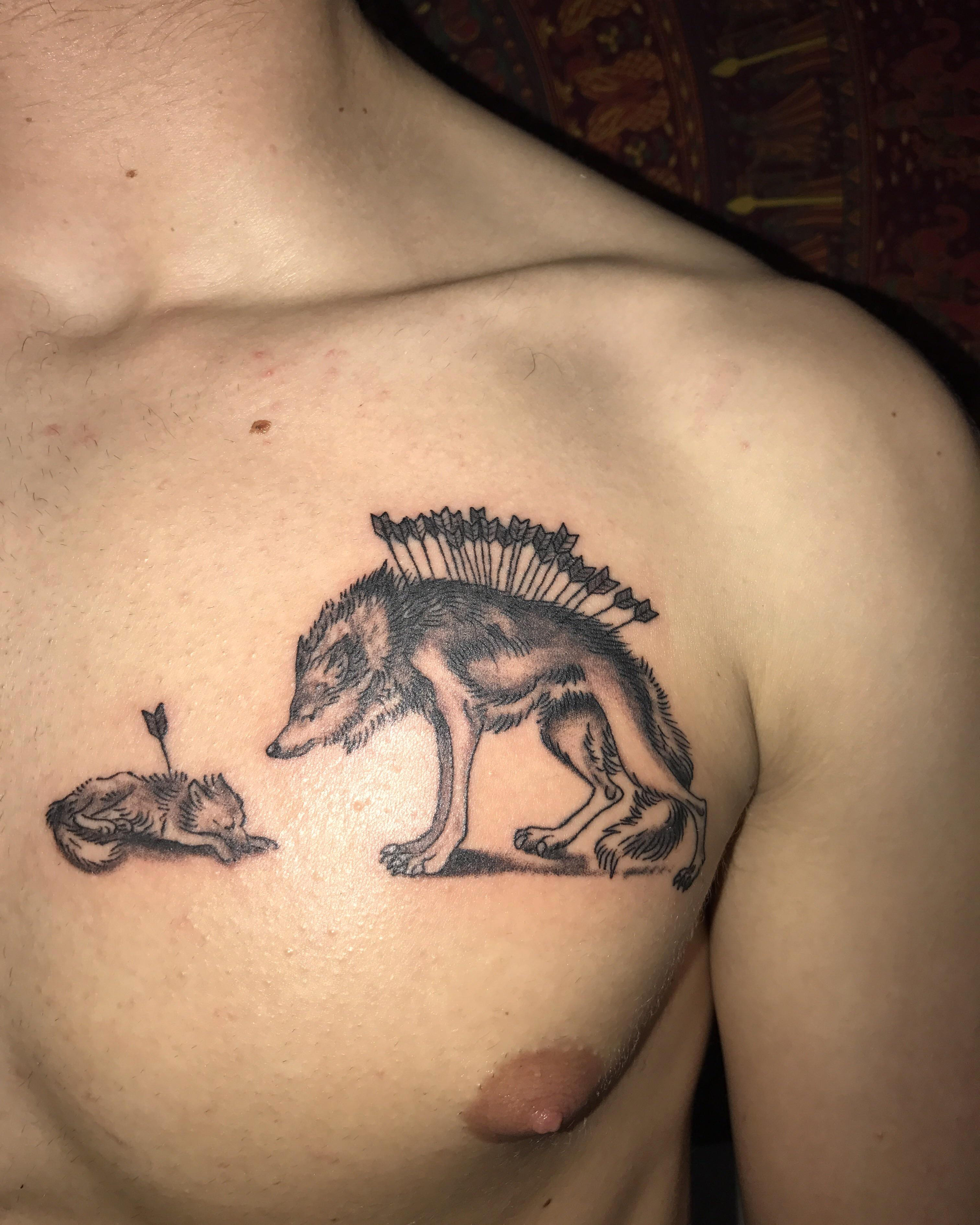 Wolves tattoo, by Bryan Davis @ Tower Classic in STL