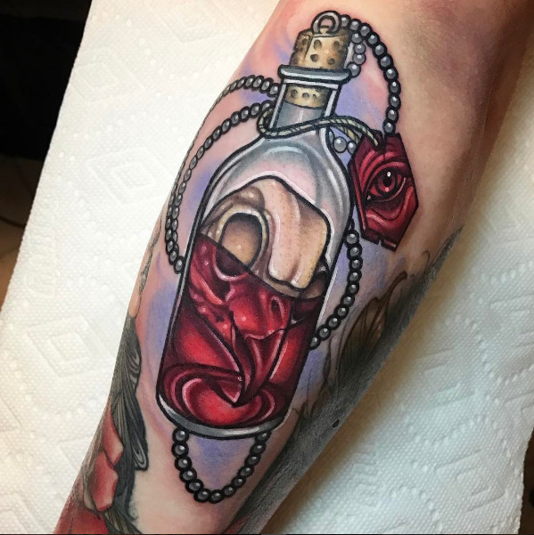 Owl Skull Vial Ant Walsh @ Evolution Tattoo Mantua, NJ
