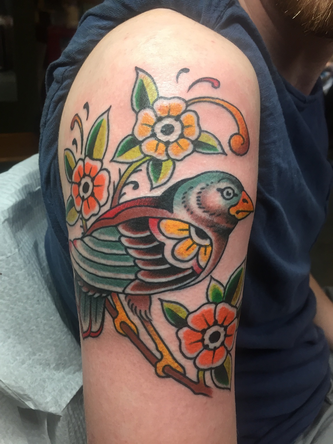 Bird and flowers done by Theophile Bourgeois at Tattooagogo New Orleans, Louisiana