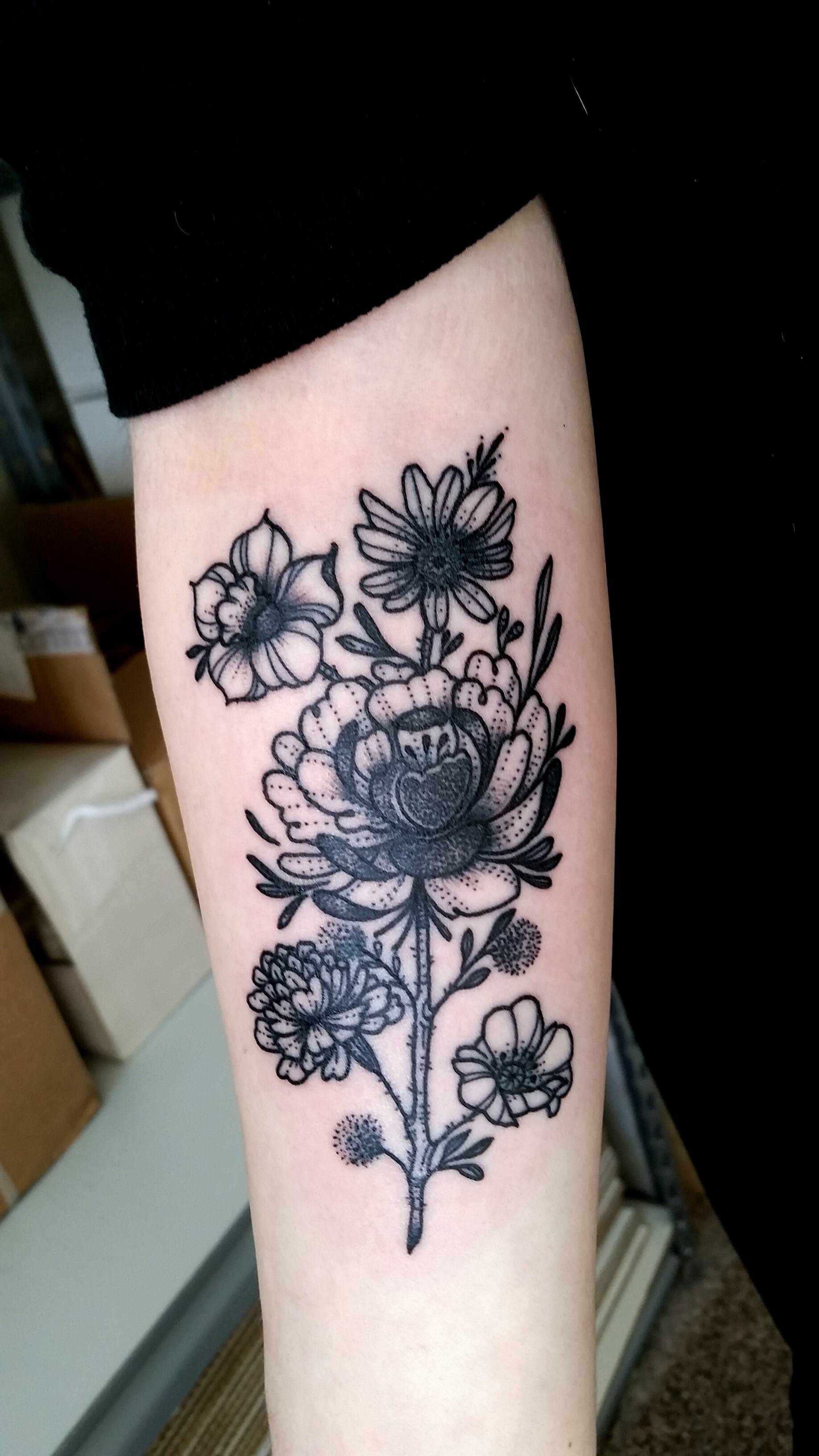 Floral family portrait tattoo