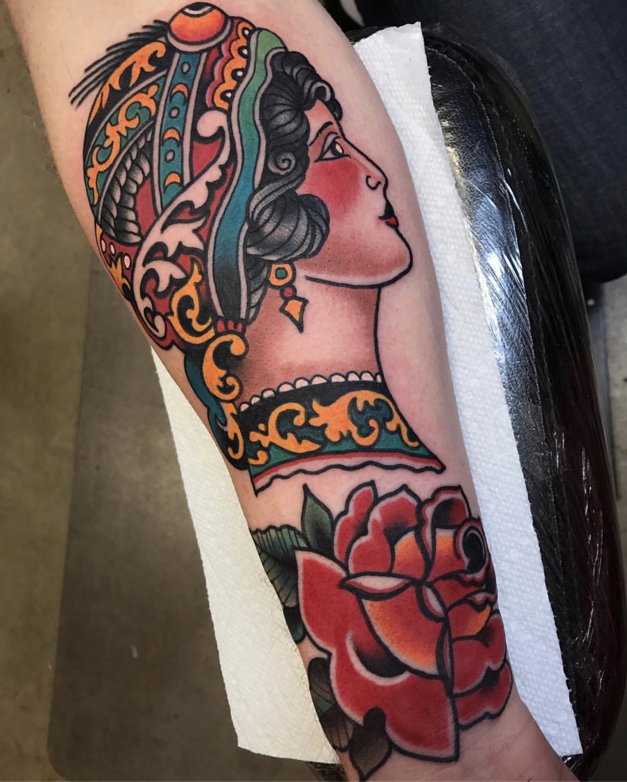 Gypsy Girl and Rose done by Billy White at Red Rose, Zanesville, OH