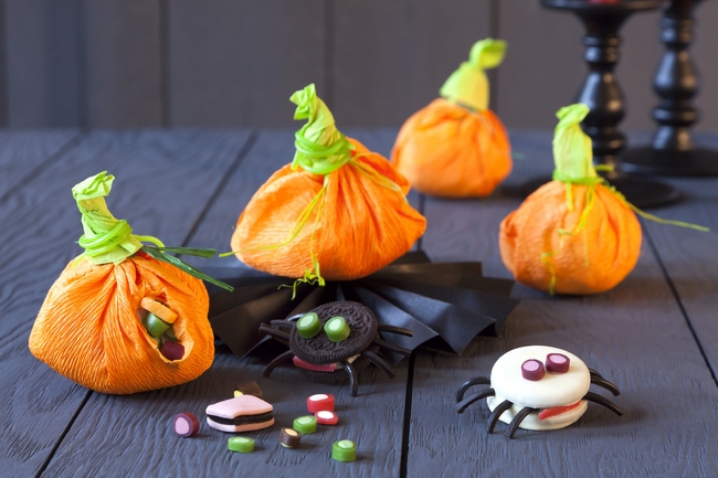 Diy halloween decorations party crepe paper pumpkins goody bags
