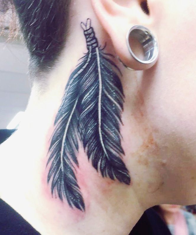 Feather neck tattoo by Hattie @infinite ink Coventry, UK #evamigtattoos #tattoo