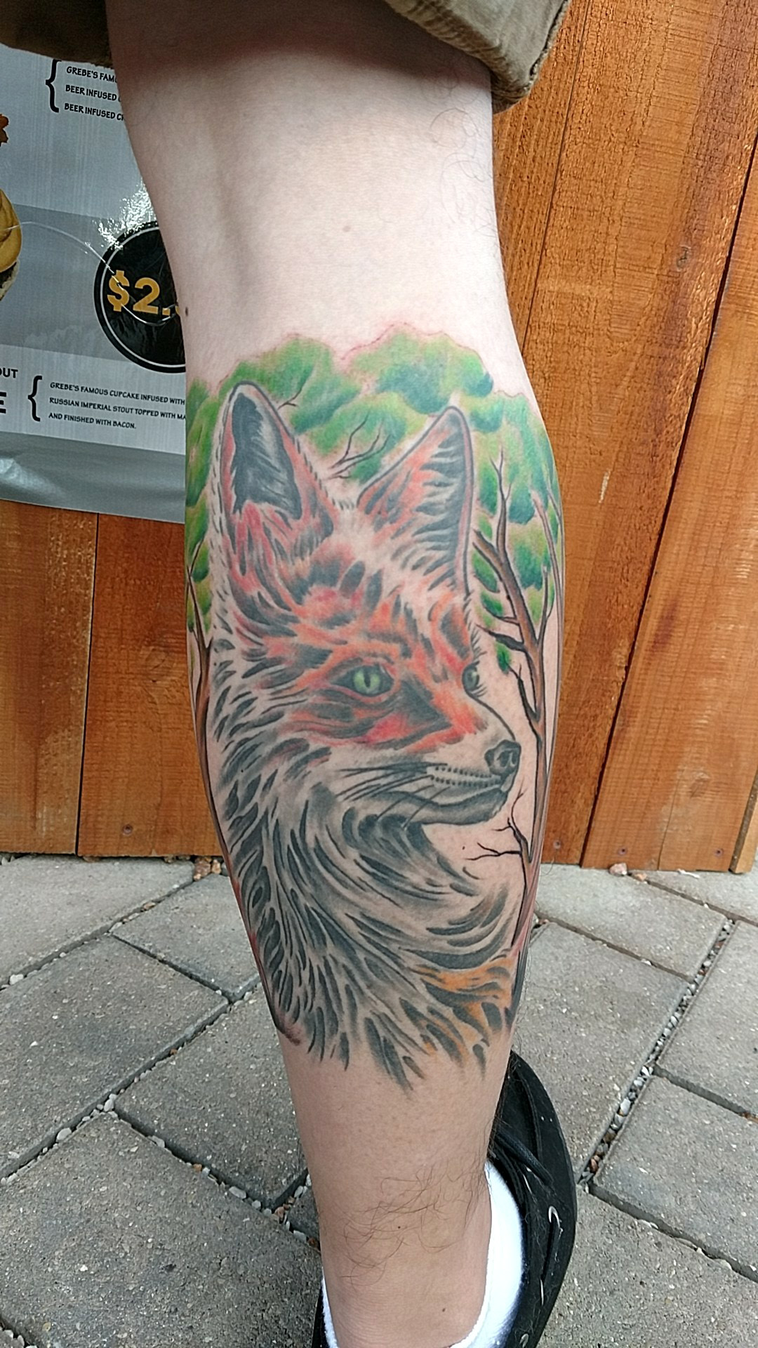 Fox and Forrest tattoo by Troy Garris at custom tattoo, Milwaukee WI #evamigtattoos #tattoo