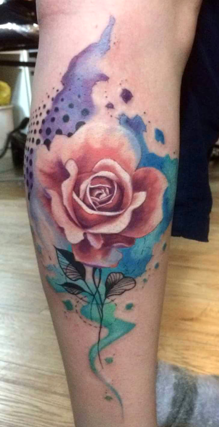 Watercolour rose tattoo Courtesy of Olive at Briar Rose Studio in London, UK