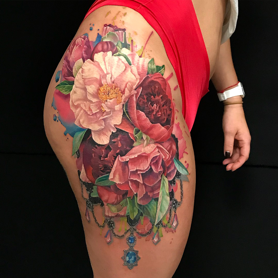 Flowers tattoo by Angry Fox Tattoo #evamigtattoos #tattoo