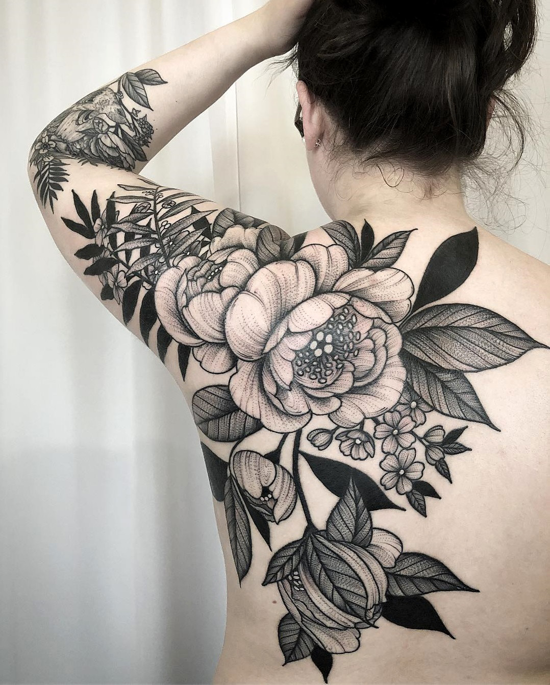 Peonies, tattoo by Kyle Stacher #evamigtattoos #tattoo