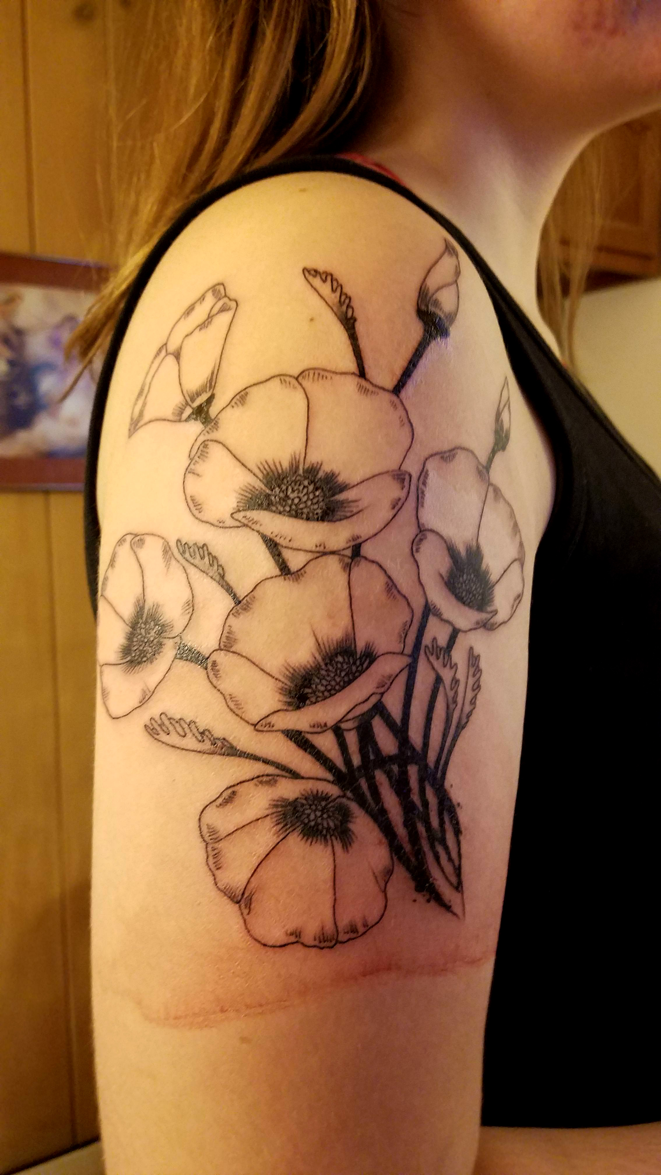 Poppies done by Gary at the Exotic Body, Sacramento, CA #evamigtattoos #tattoo