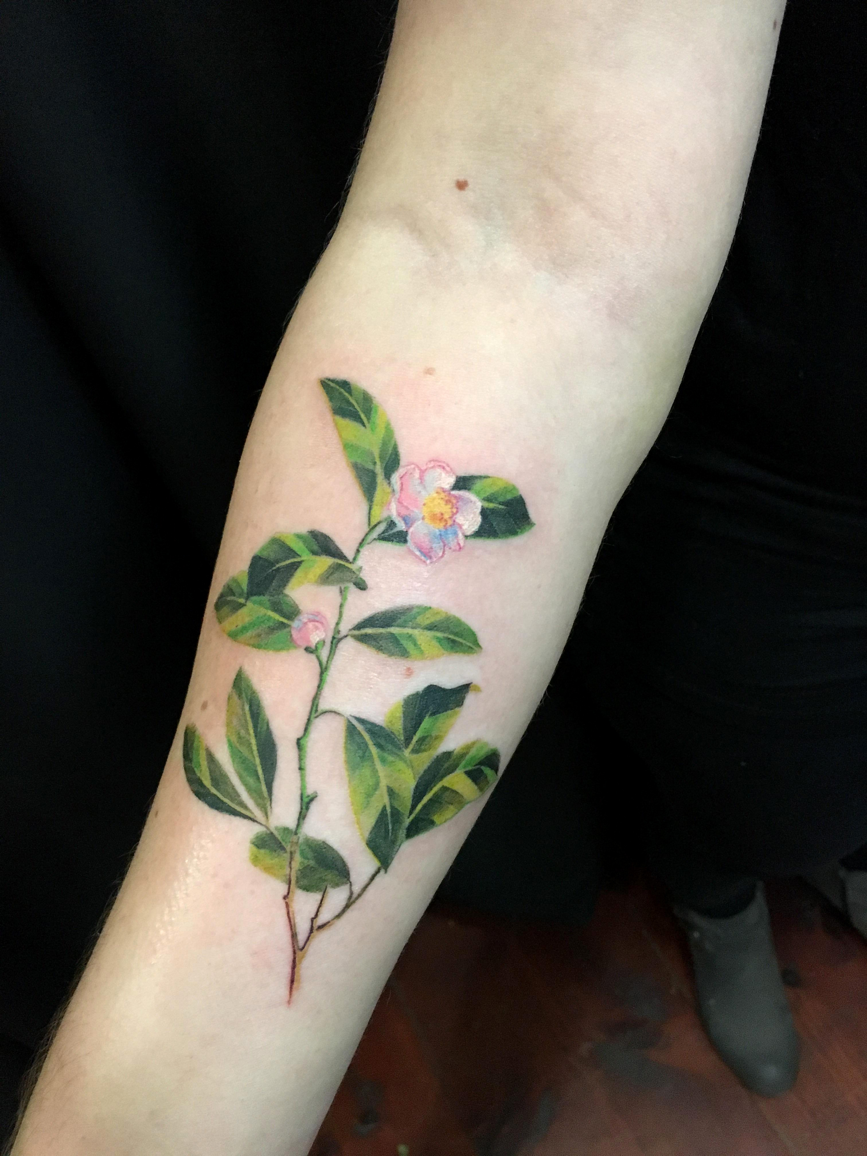 Tea plant tattoo by Anna C. at The Warren Tattoo in Los Angeles, CA #evamigtattoos #tattoo