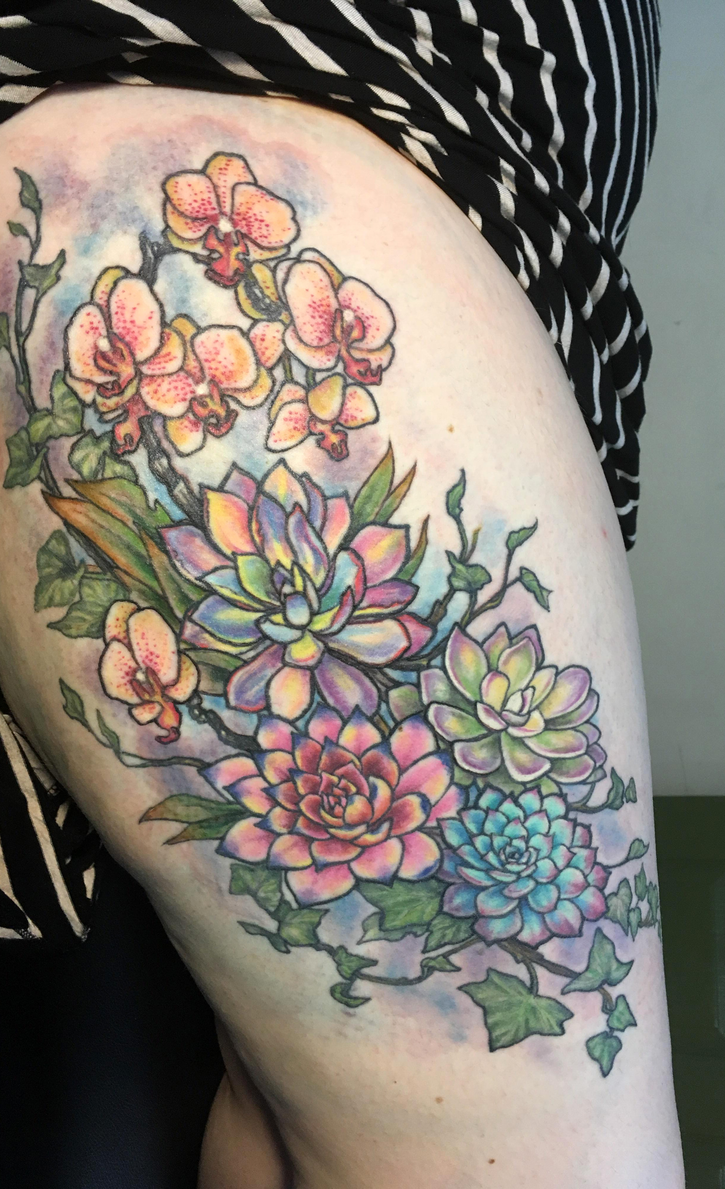 Succulents Orchids Ivy done by Dana at 717 Tattoo, Columbia PA