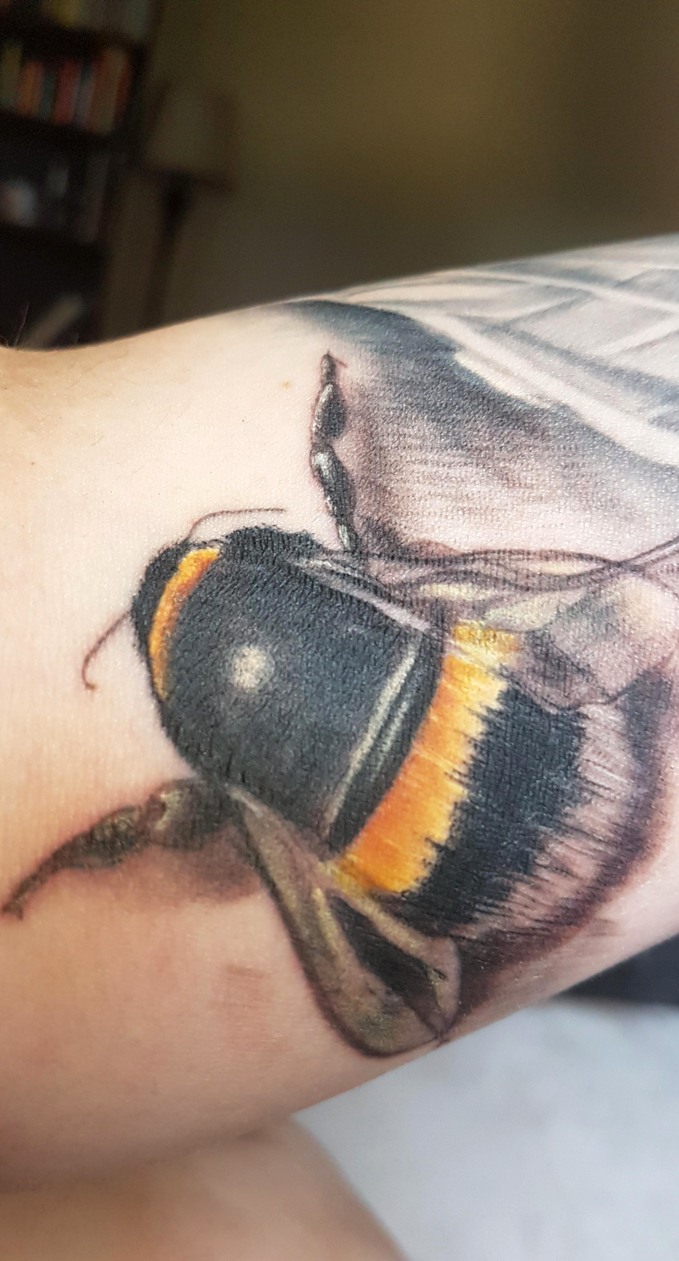 Bee sleeve tattoo. Newz @ Dynamic Studios, Kelowna BC