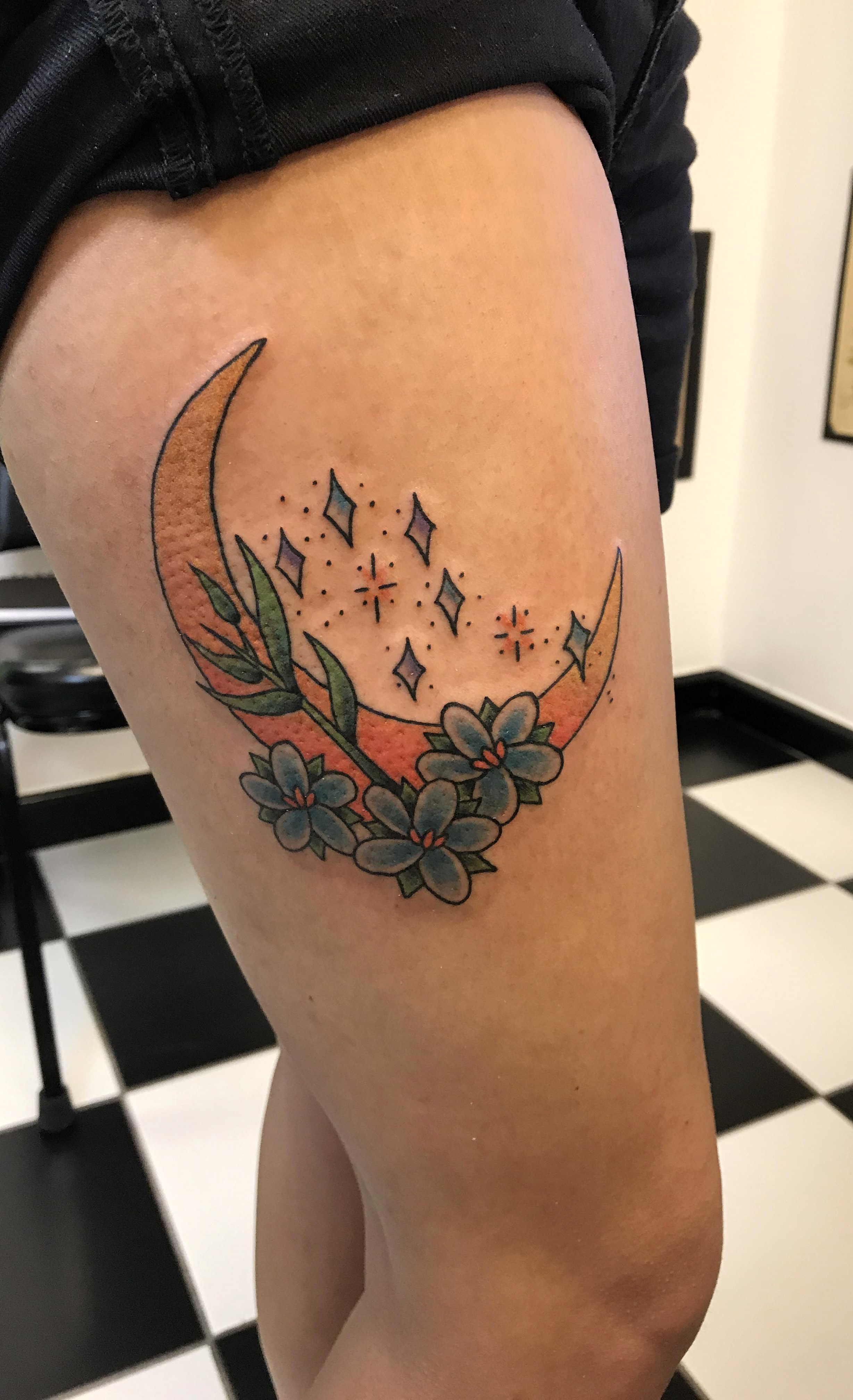Moon tattoo by Pete Murphy at Black Panther Tattoo. Brick, NJ #evamigtattoos #tattoo
