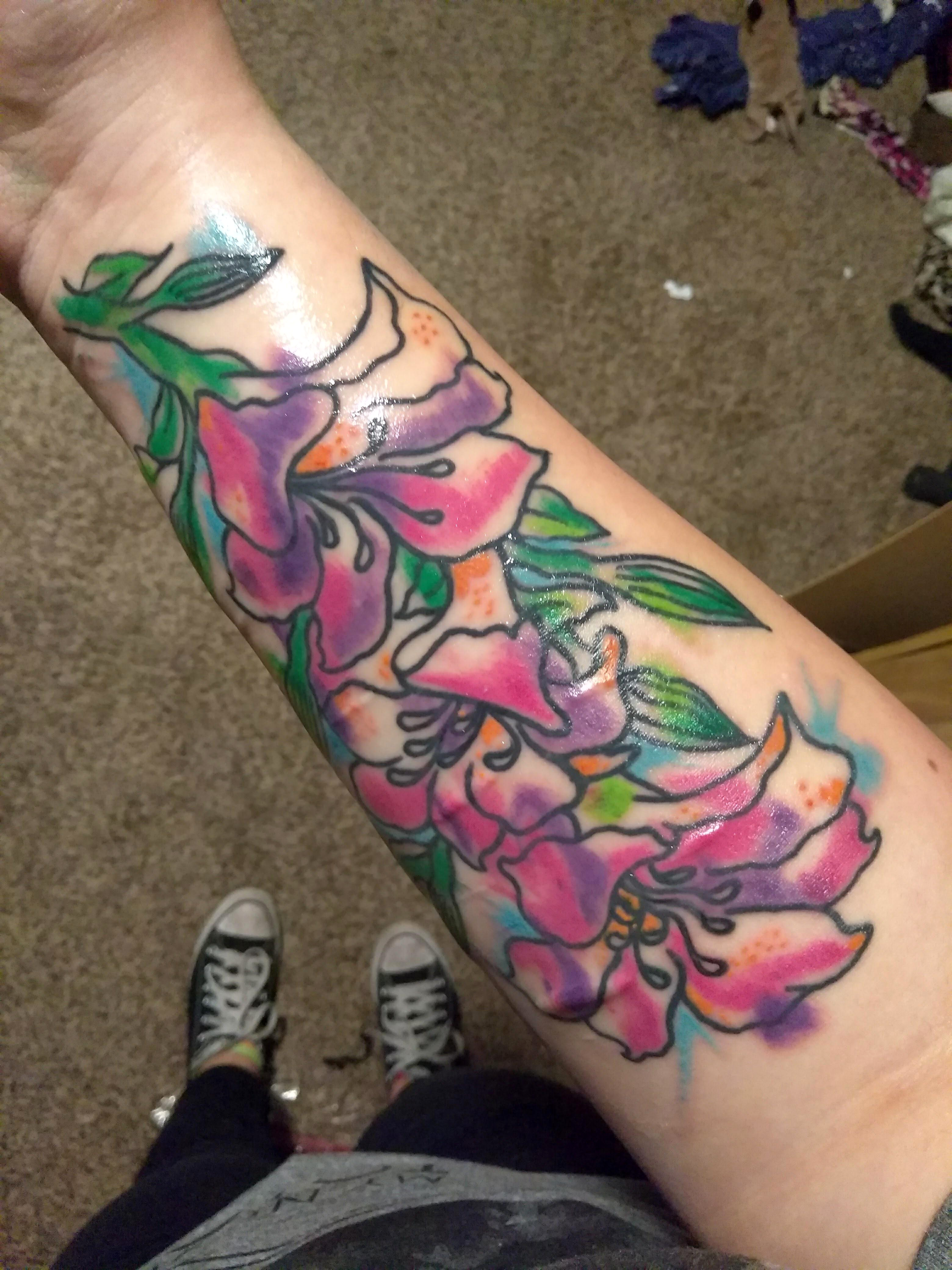 Gladiolus done by Richard Langenegger at Art 4 Art Sake in Sacramento, CA #evamigtattoos #tattoo