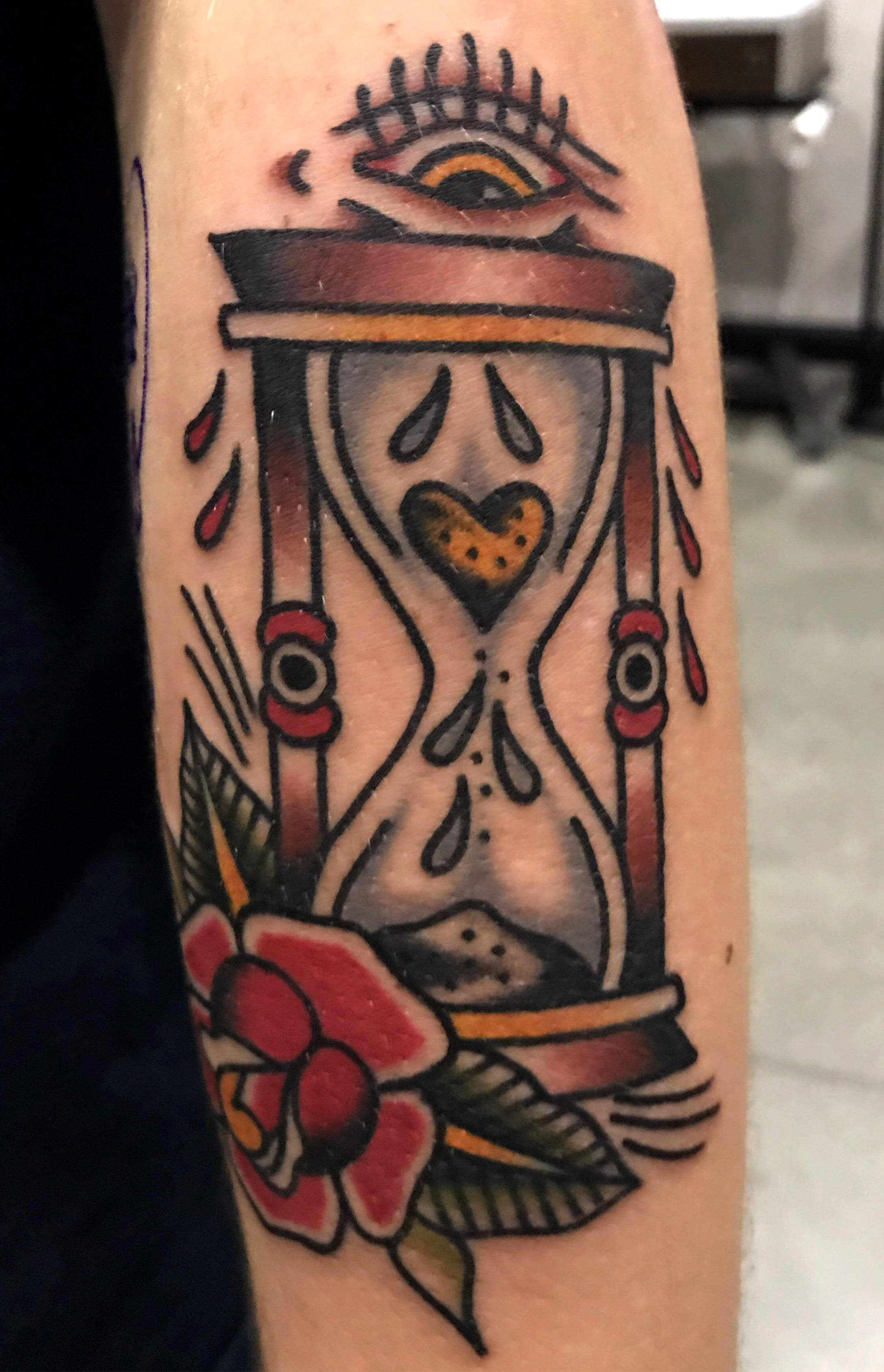 Hourglass done by Emanuel Bravo at fine line social club tattoo Bakersfield, CA #evamigtattoos #tat