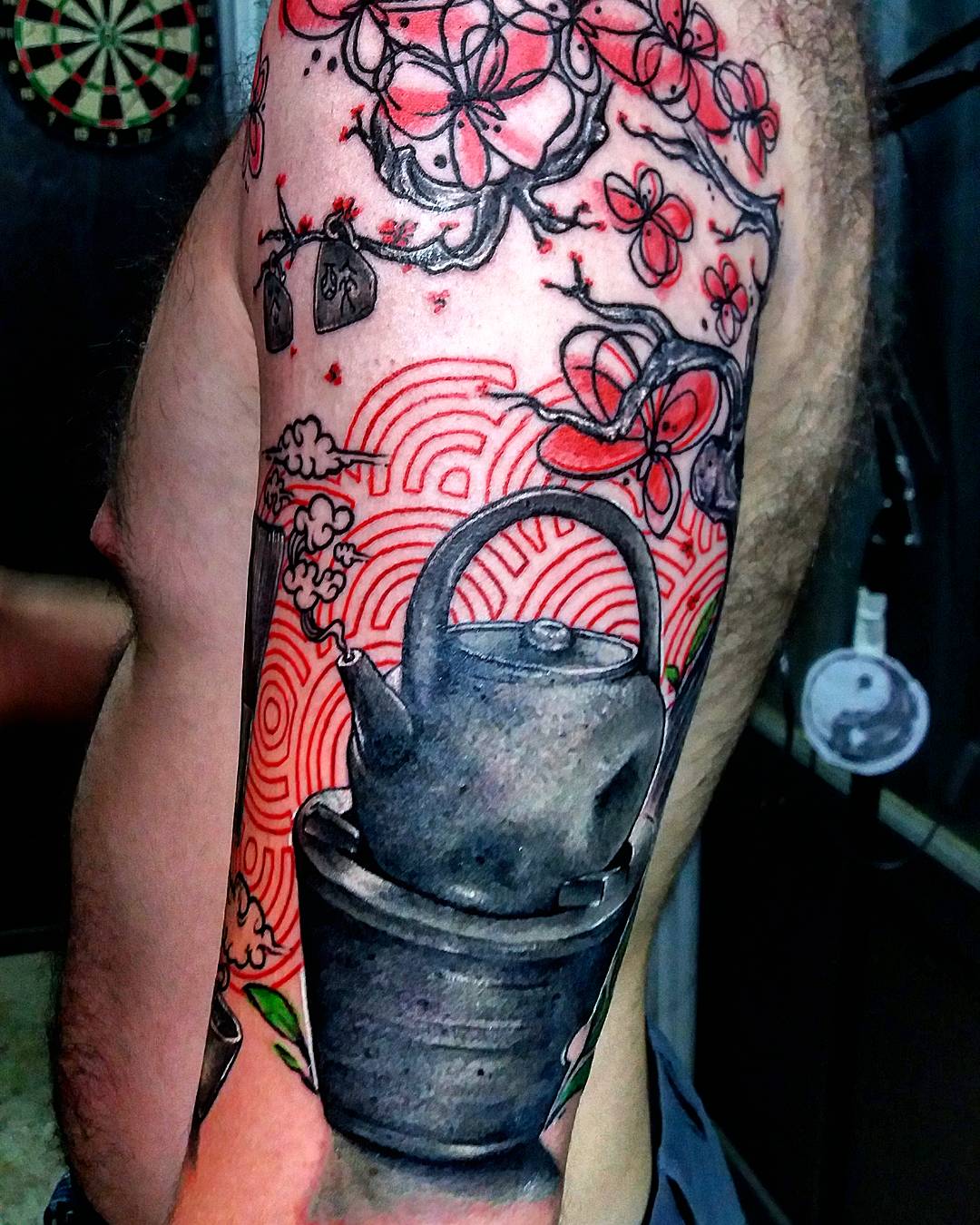 TEA SLEEVE. Credit to BJ Shretra from Craftskin, Kathmandu, Nepal #evamigtattoos #tattoo