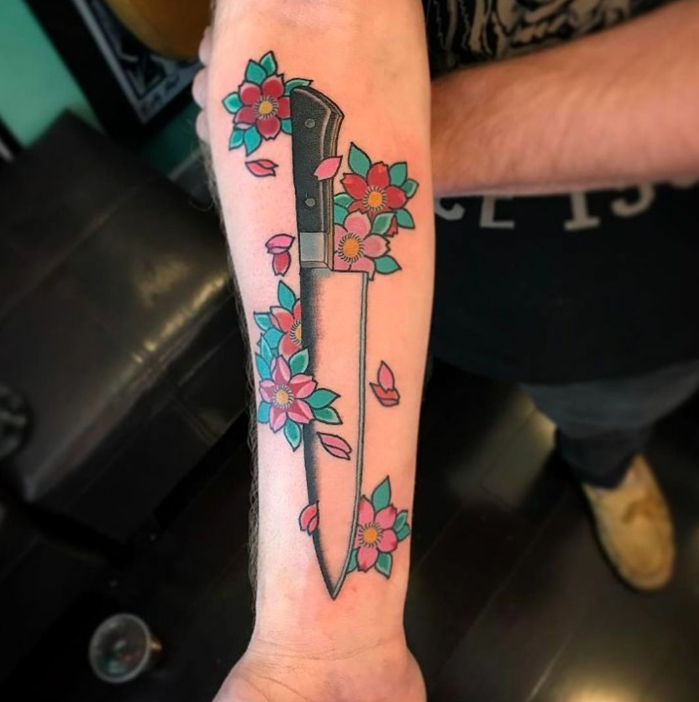 Knife tattoo. Over at garage ink studios down in Napa,ca #evamigtattoos #tattoo