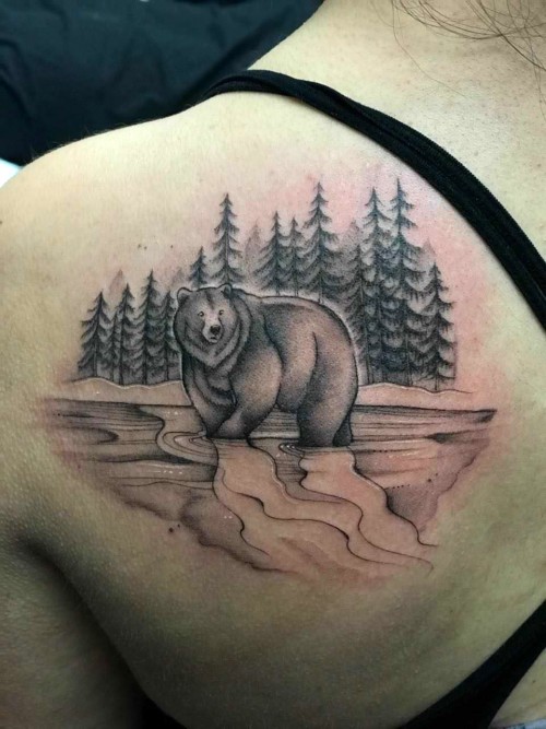 Bear done by Jessy at White Lotus in Ventura CA #evamigtattoos #tattoo