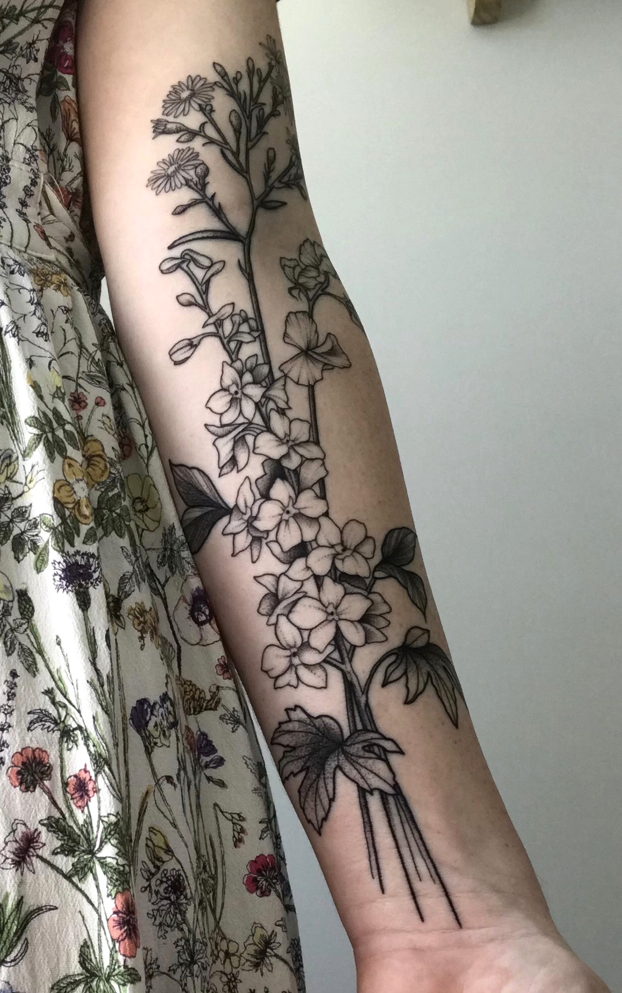 Birth flowers tattoo. By Smick at Hidden Moon Tattoo, Melbourne, Australia #evamigtattoos #tattoo