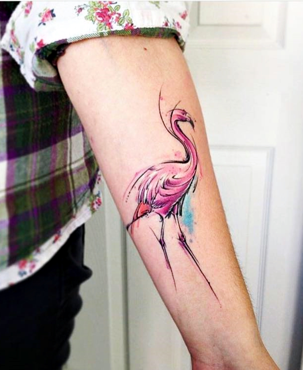 Watercolor flamingo tat #evamigtattoos #tattoo
