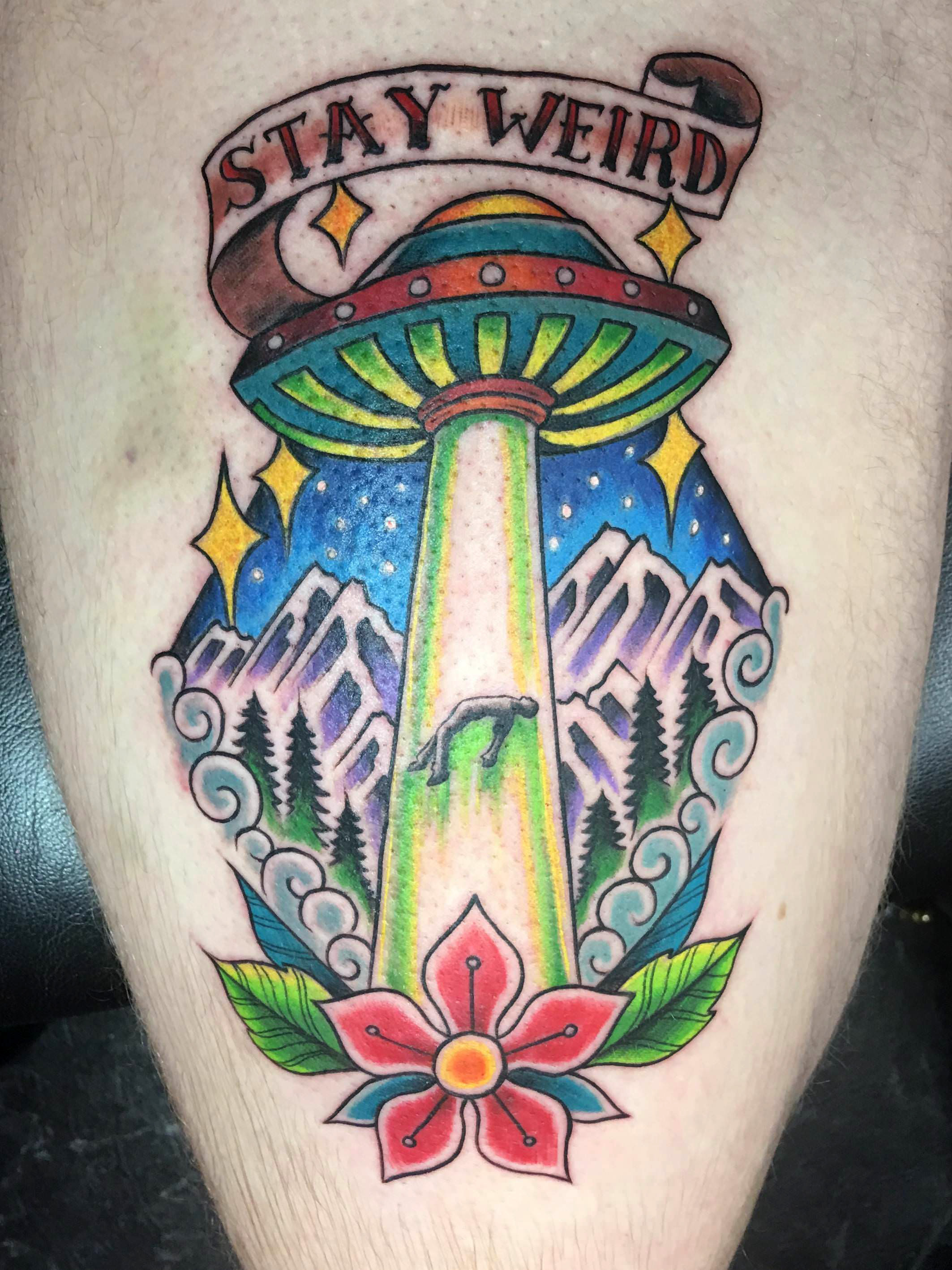 Alien abduction piece by Brian Kwan at Next Chapter Tattoo, Clovis NM #evamigtattoos #tattoo
