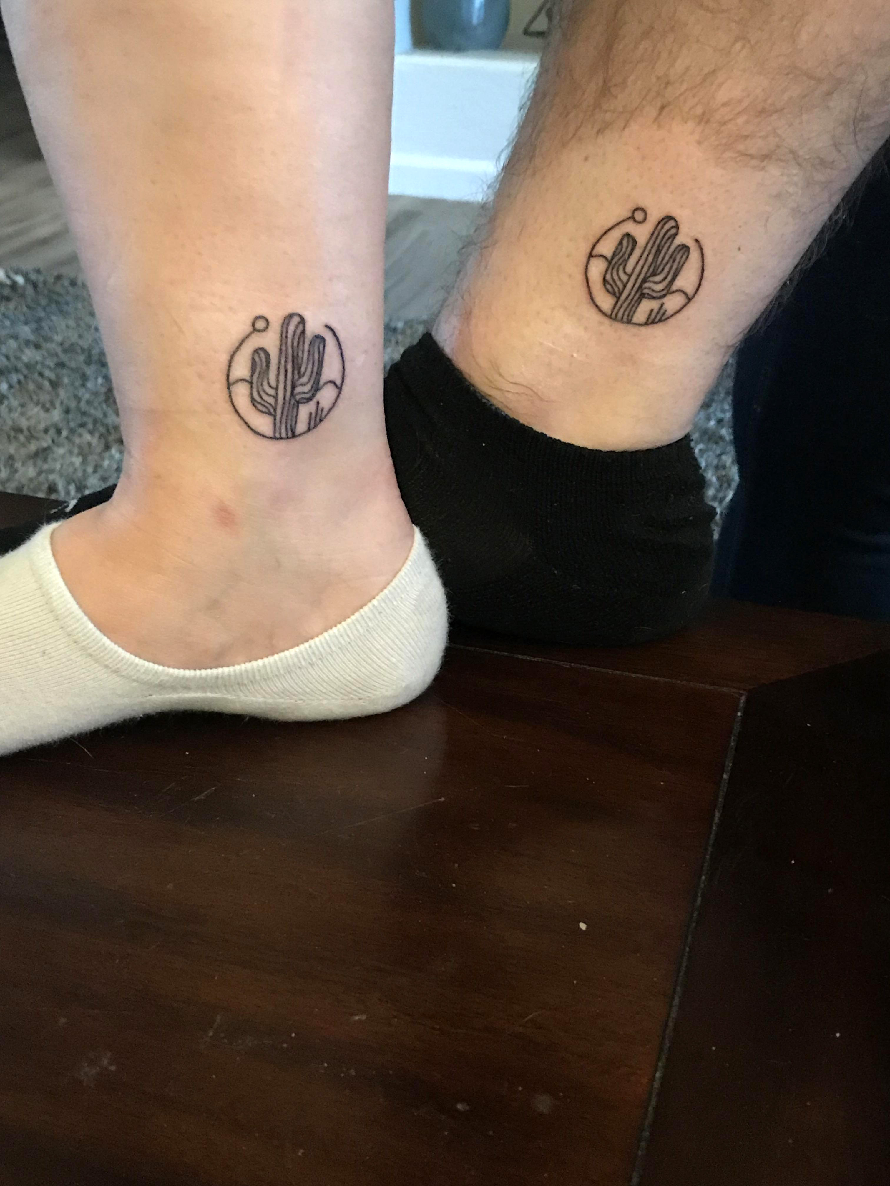 Cactus tattoo. Matching brother sister Arizona tattoos done by Xavier Price at Dark Horse Tattoo Com