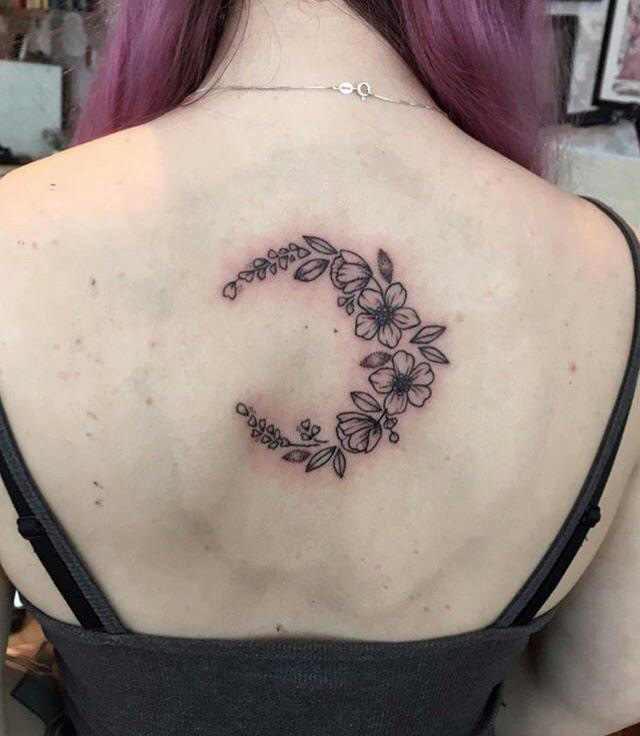 Floral moon by Nikki at Needlecraft tattoo, Worthing, England #evamigtattoos #tattoo