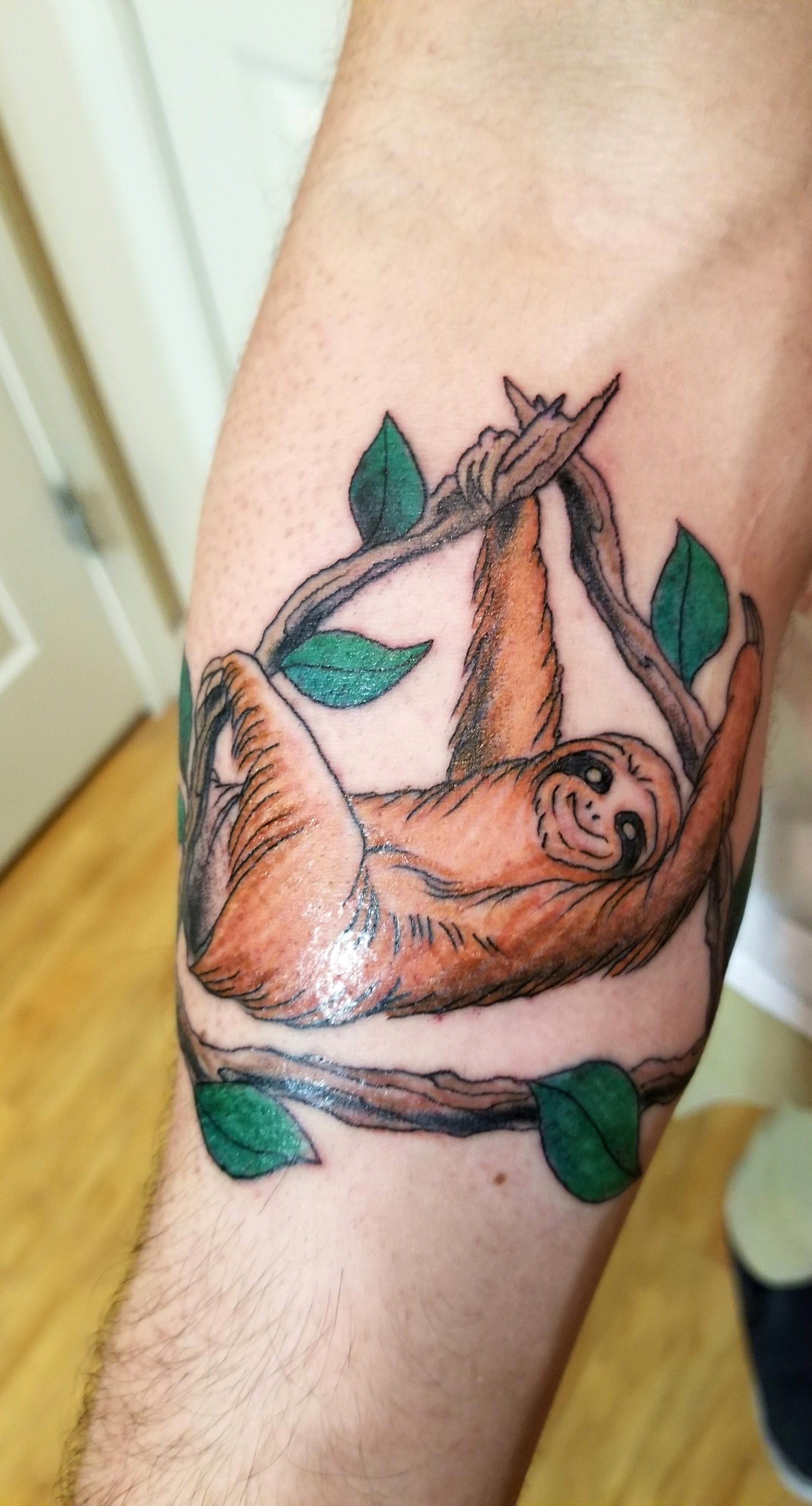 Sloth tattoo by Pete the Bruiser, element tattoo, San Antonio #evamigtattoos #tattoo