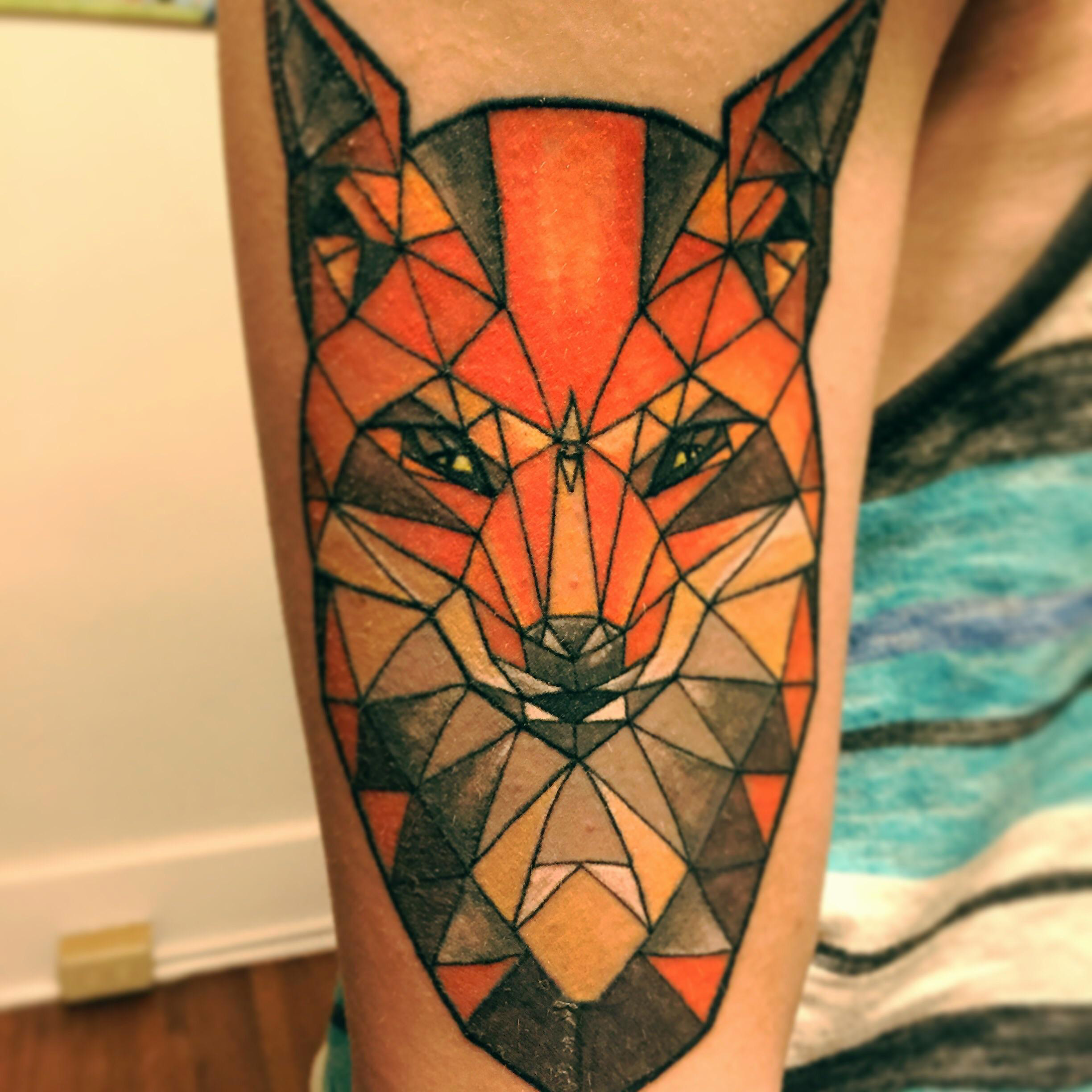 Geometric fox, done by Billy Albert, Sin in Skin Ink in Bartonville, IL #evamigtattoos #tattoo