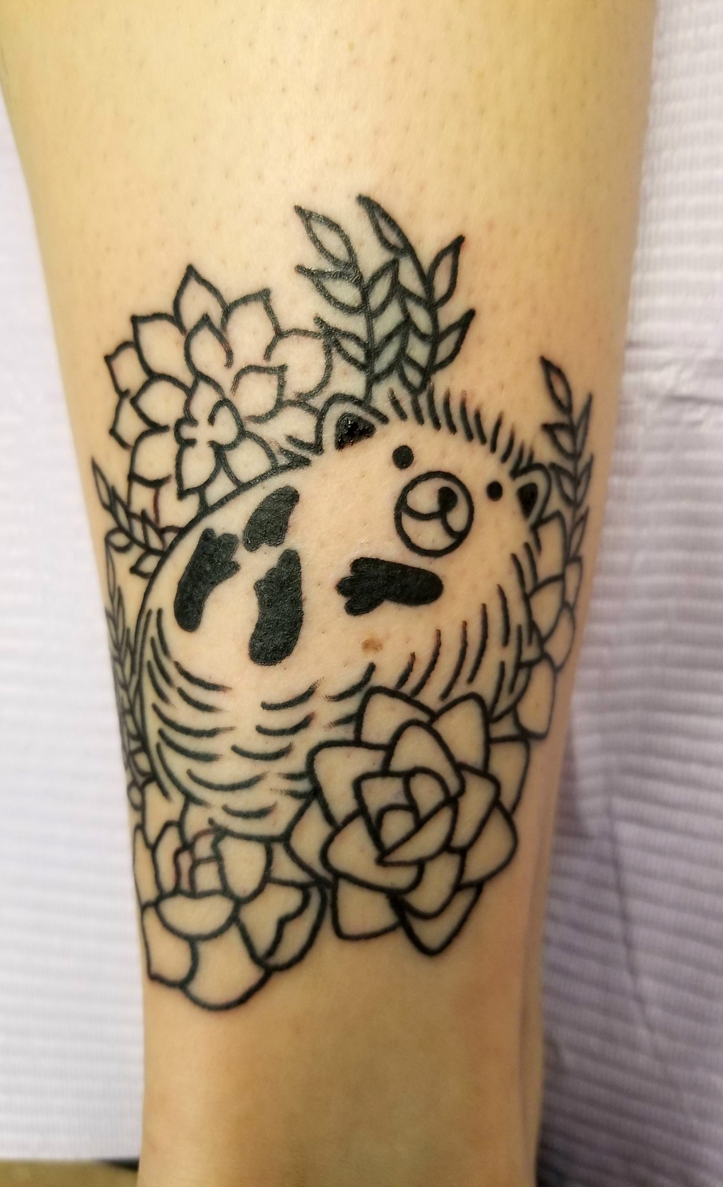 Hedgehog tattoo done by Sam at Saints and Sinners in Carrollton, TX #evamigtattoos #tattoo