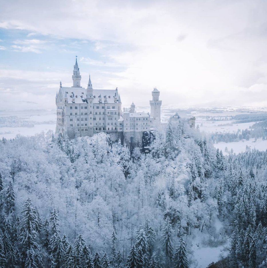 Neuschwanstein Castle in Germany looks magical in winter