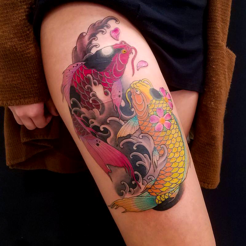 Koi Fish by Adam Sky, Resolution Tattoo, San Francisco, California #evamigtattoos #tattoo