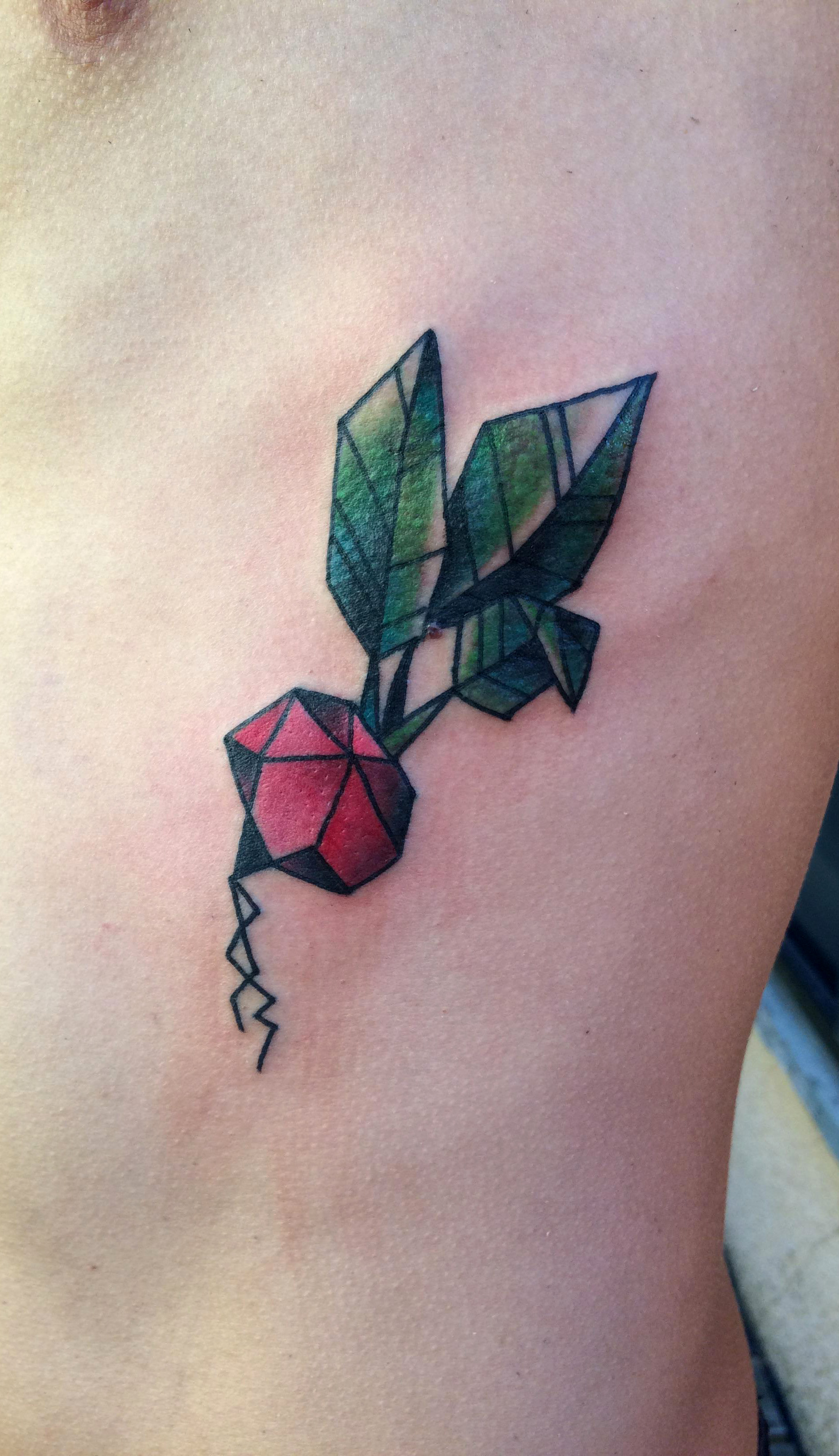 Geometric beet tattoo by Alexis at Spiral Tattoo in Ann Arbor