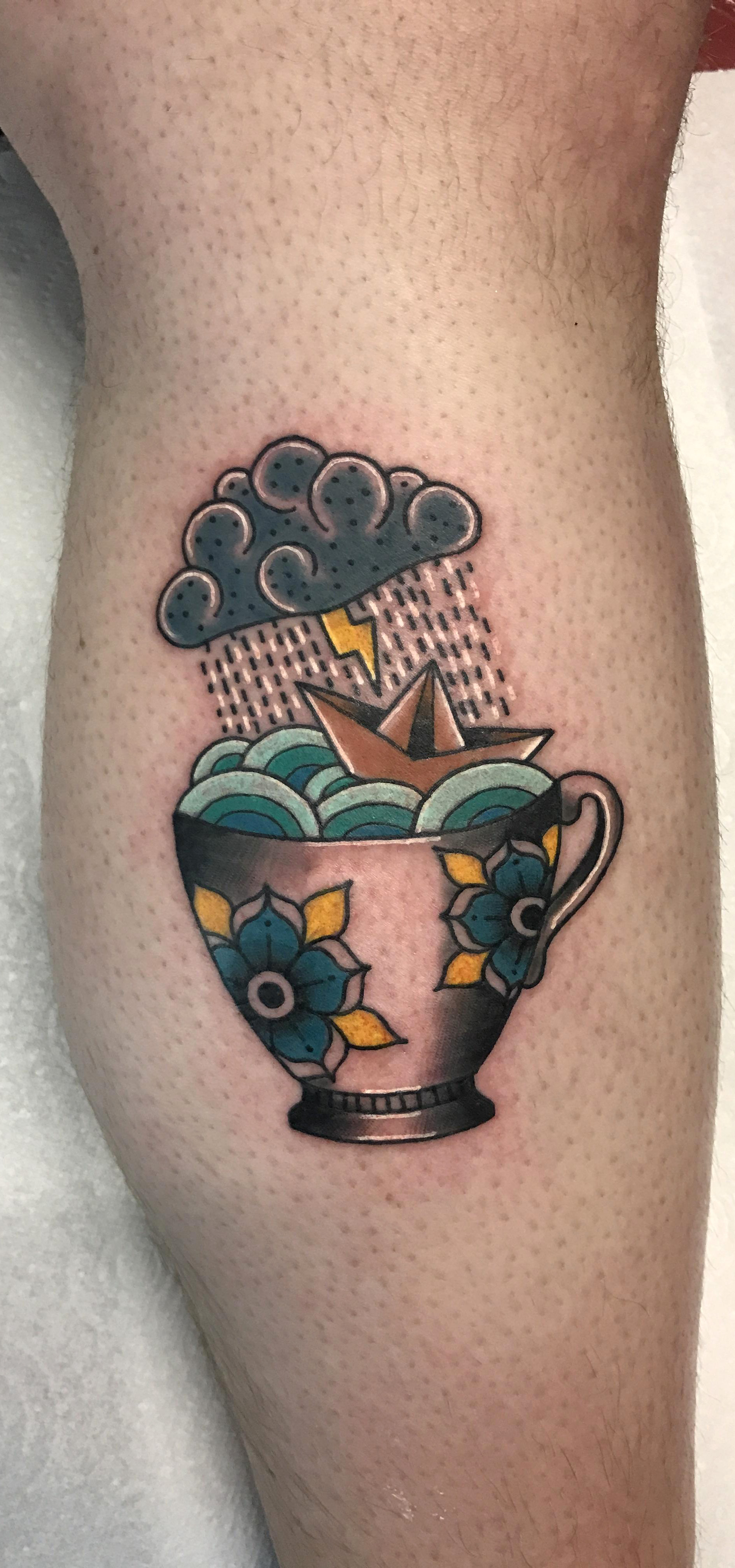Rain tattoo. Storm in Tea cup by Steppie, Tayport Tattoo Collective, Scotland