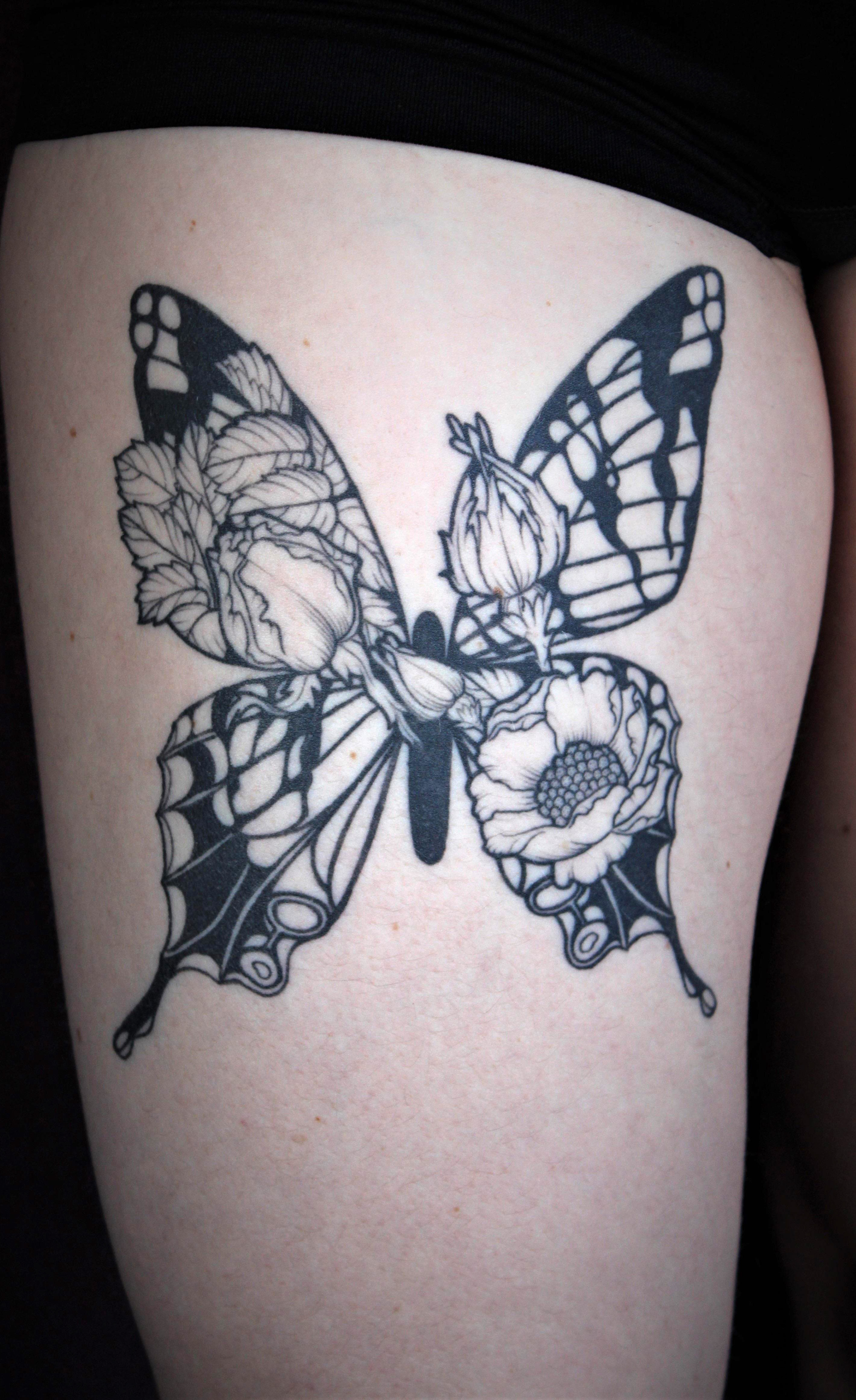 Blackwork butterfly, done by Sara Fabel while guesting at Bang Bang Tattoos in NYC #evamigtattoos