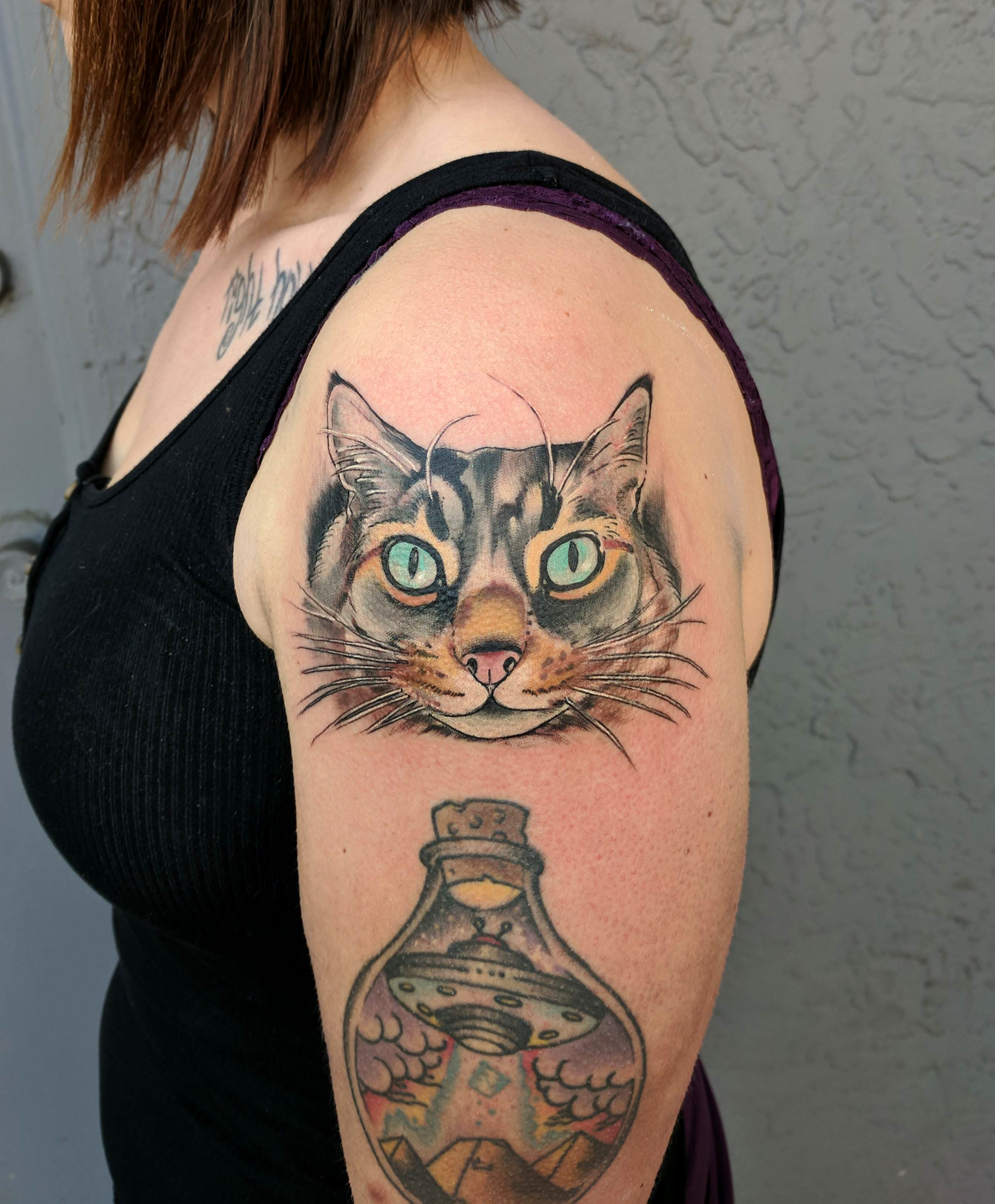 Cats and aliens. Both by Bryan Turnbull @ Government st tattoo. Victoria British Columbia