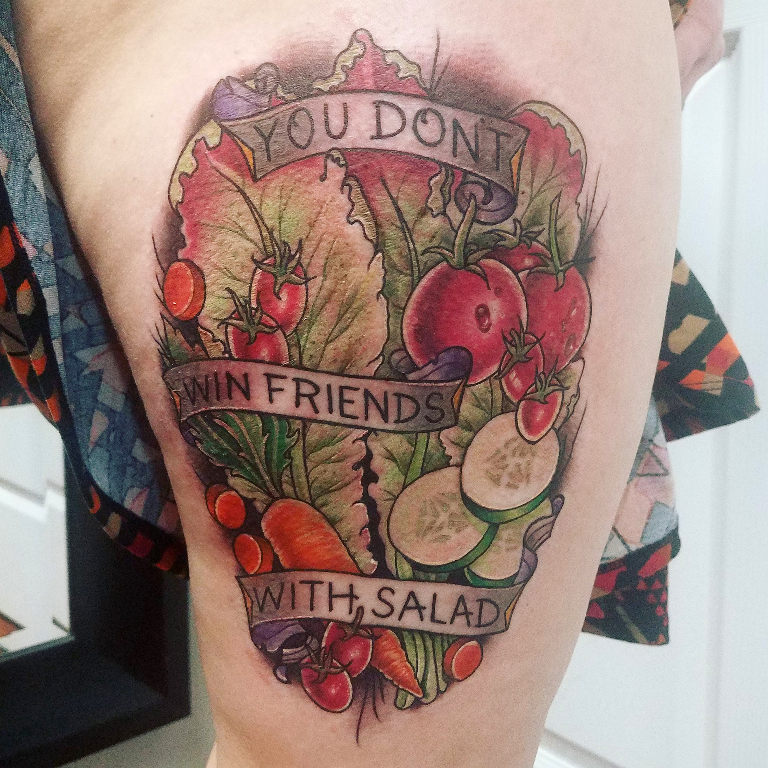 Salad tattoo done by Dave at Brand New Tattoo in Ewing, NJ #evamigtattoos #tattoo