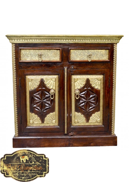 This Hand Pressed Brass Metal fitted Sideboard is beautifully hand made in India giving it a very distinct Indian/ Moroccan Look. Detail and Quality of workmanship really stands out on this piece. This would work as a very practical piece of furniture in any home with plenty of storage space and unmatched character.