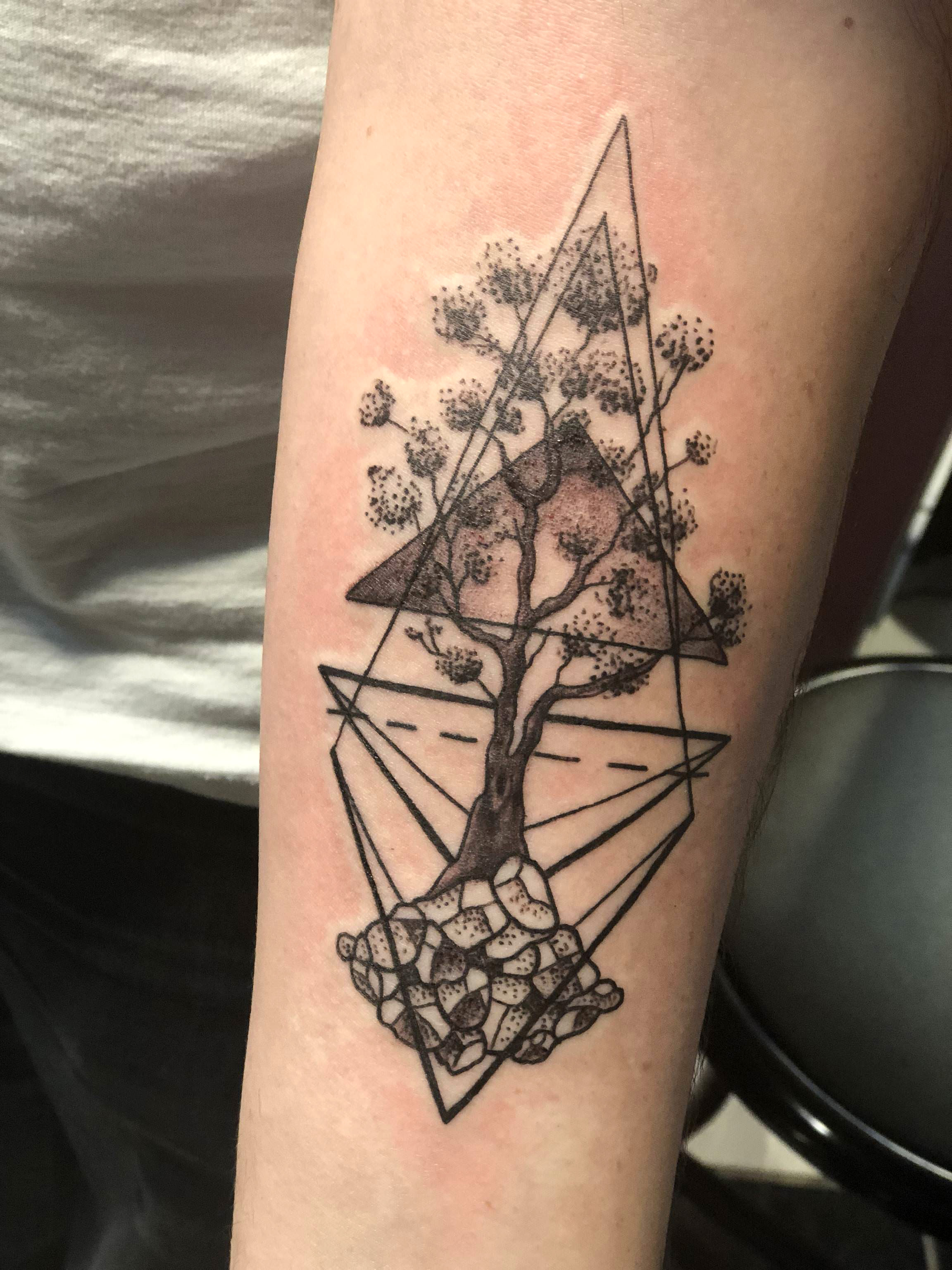 Geo tree that I got done yesterday by Nicki at Steel Addictions, Toledo, OH #evamigtattoos #tattoo