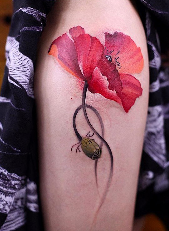Poppy flower tattoo Chen Jie Newtattoo #evamigtattoos #tattoo