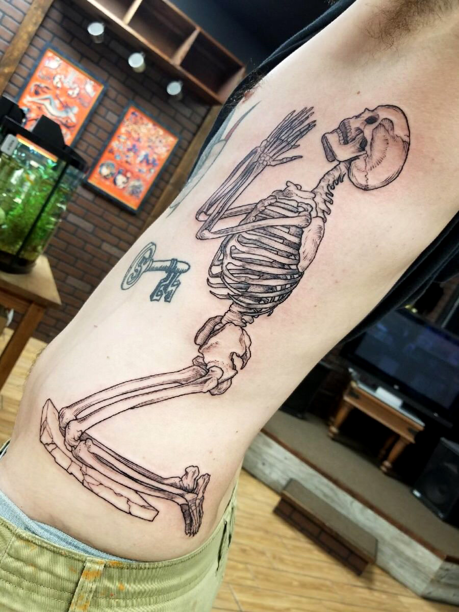 Skeleton Praying by Mark Eaton at Ivy and Oak tattoo shop in Lake Park Florida #evamigtattoos