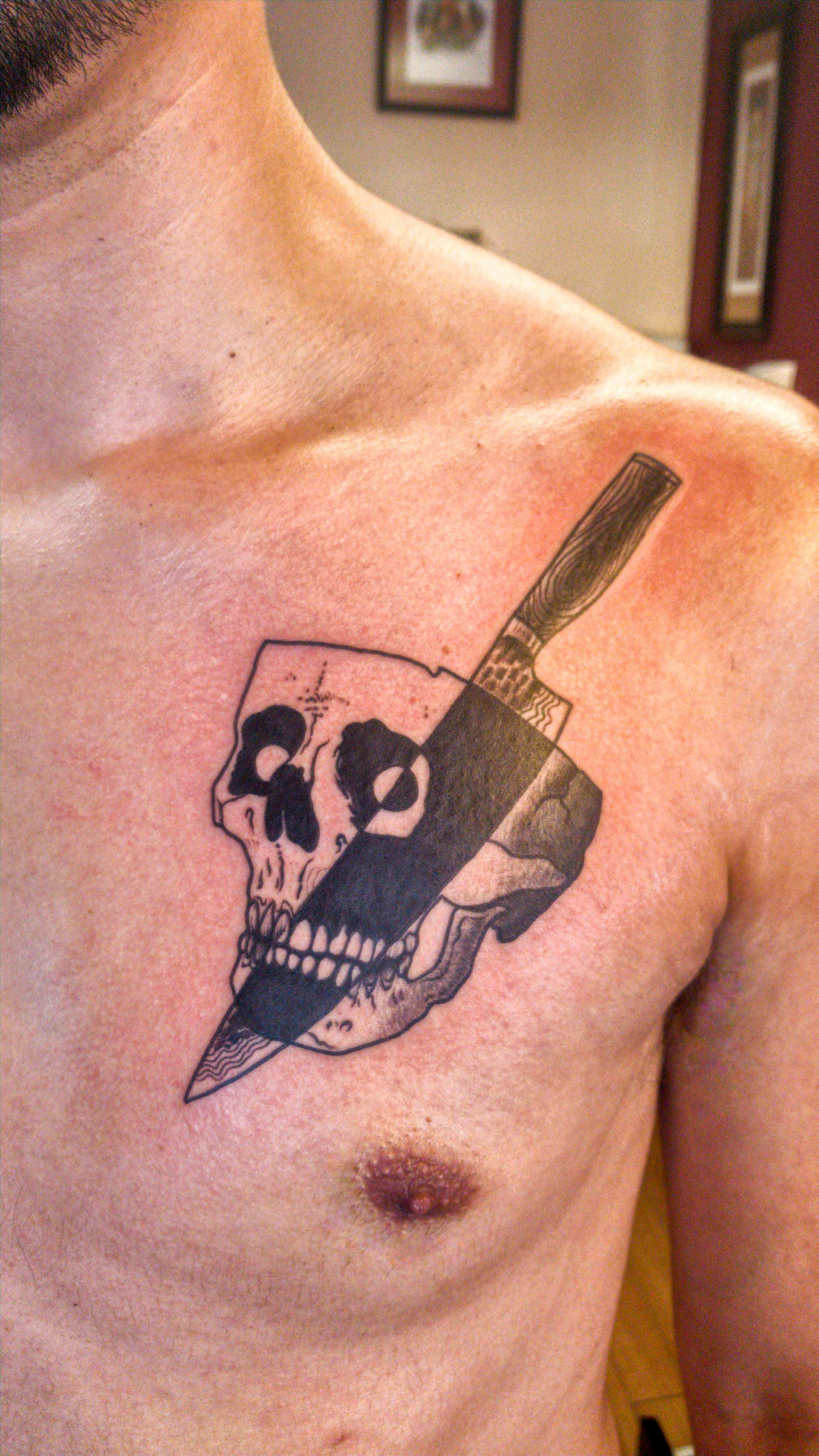 Skull & Japanese Miyabi knife done by Volken @ Old Bastard's Tattoo in Cluj Napoca, Ro