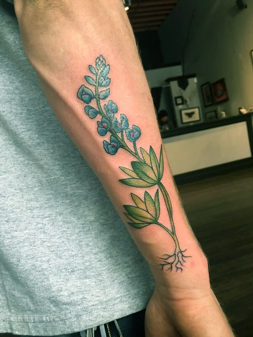 Blue Lupin tattoo done in Cambridge, MA renamed Boston Tattoo Company #evamigtattoos #tattoo