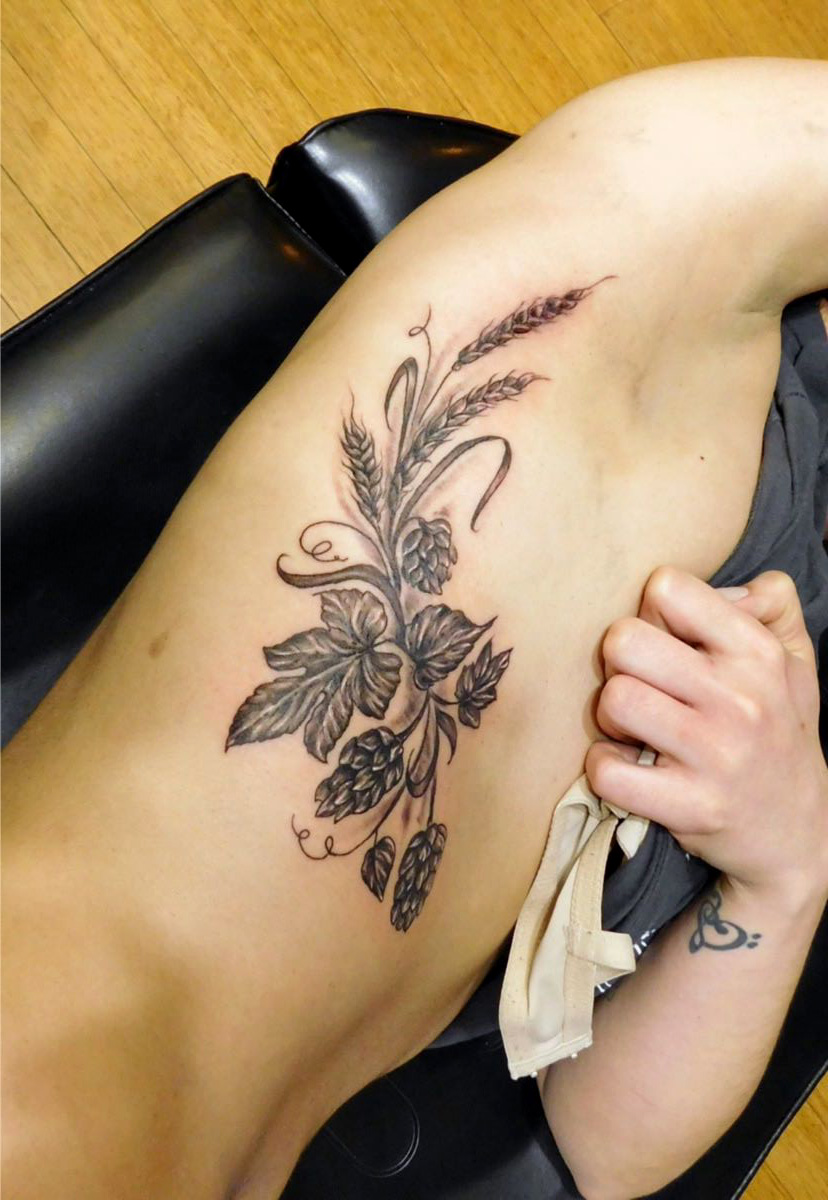 Some hops and wheat by Sean Harty at Hermit Tattoo in Lawrence, KS #evamigtattoos #tattoo
